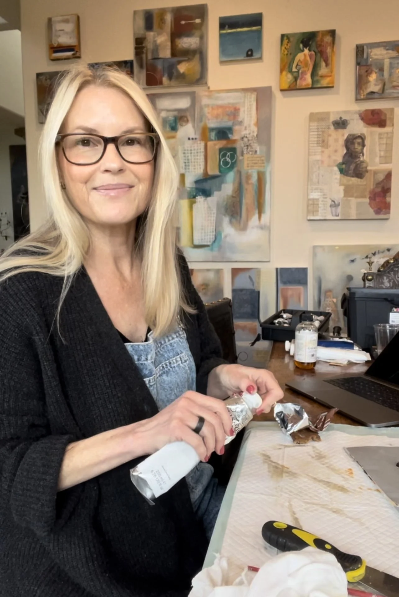 Artistic expression has always been central to my life. My mother was an artist, and, growing up in the ’60s and ’70s, I was surrounded by artists, writers, and philosophers. Watercolor was a favorite medium in high school; then I turned to acting, and, many years later, returned to visual art. Since 2020, my practice has grown into a daily routine that grounds me and brings me purpose and joy.